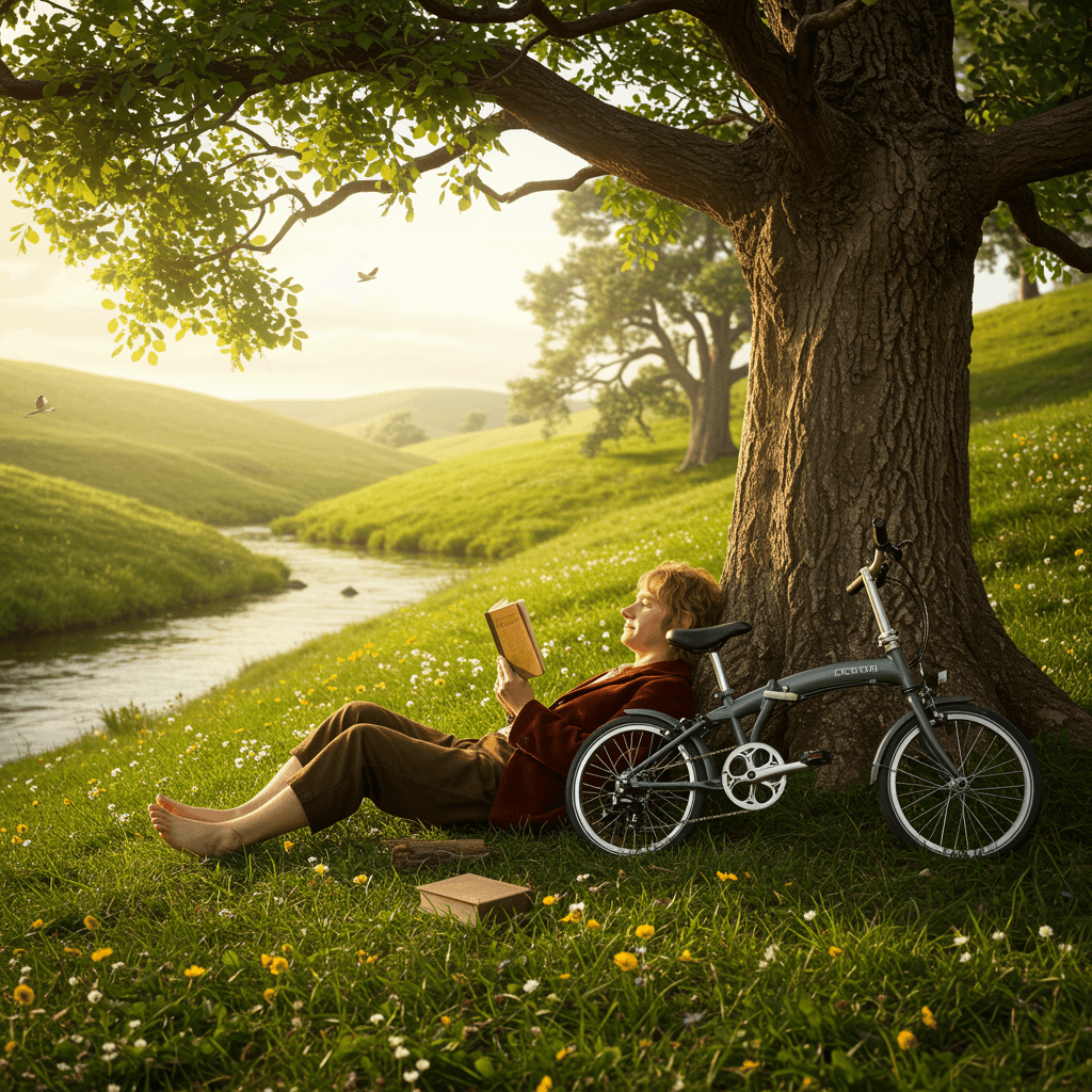 "No todos los caminos llevan a dragones… algunos solo llevan a una buena tarde de lectura bajo un árbol. Y para esos días, esta bicicleta es perfecta."